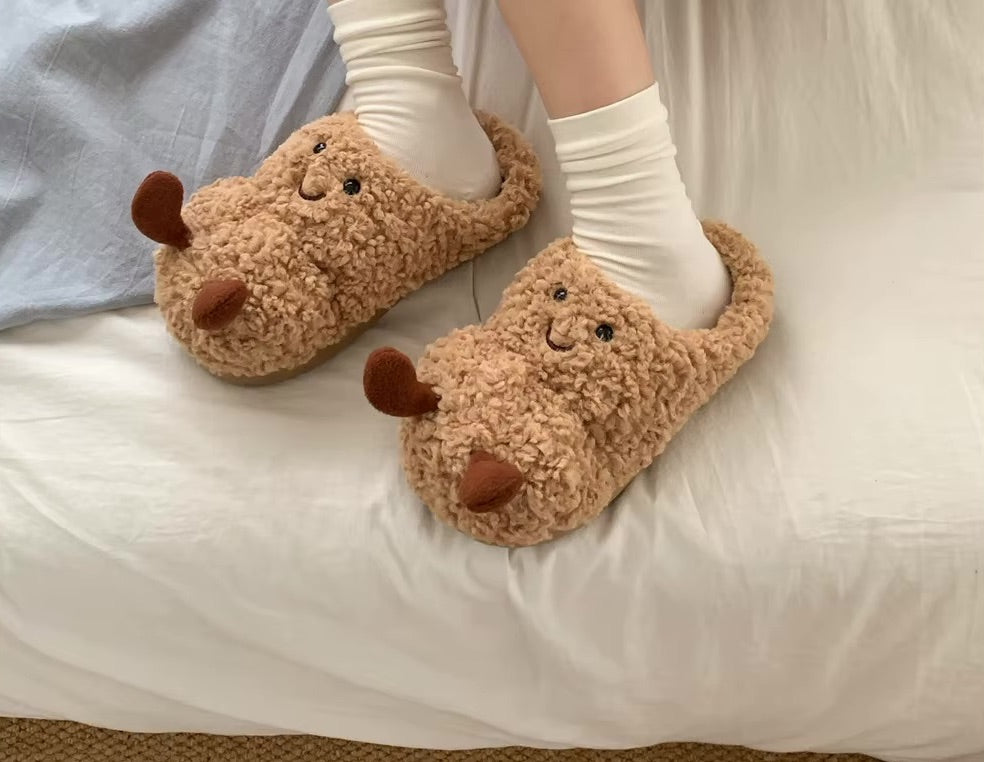 Each slipper features a sweet, embroidered smiley face and two adorable floppy ears (or are they paws?) that bounce with every step. The plush, fleece-lined interior wraps your feet in 360-degree warmth, making them the perfect antidote to cold floors and long days.